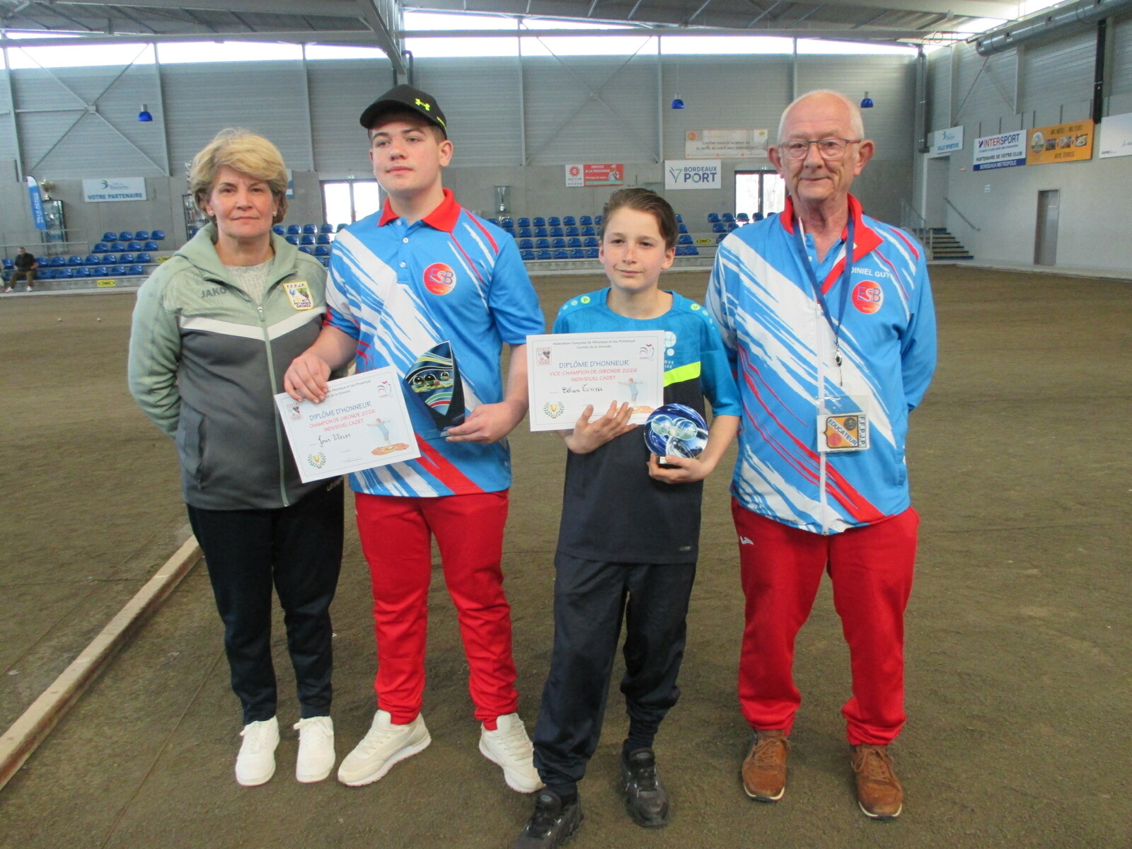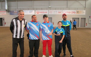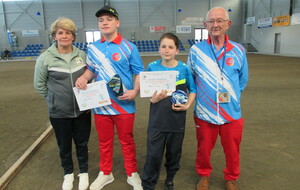 Dans la catégorie « junior », ils étaient 16. Tous ne pouvaient pas jouer à l’intérieur du boulodrome et la météo étant presque estivale, nos juniors ont joué leurs quatre parties à l’extérieur. Demi-finales : Manon LACOSTE / Gabriel MONTOYA et Mathis EMERY / Karl ETIENNE. La finale opposait : Karl ETIENNE et Gabriel MONTOYA. Champion de Gironde : KARL ETIENNE (Club de Bruges).