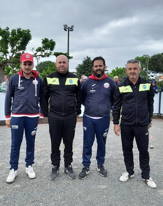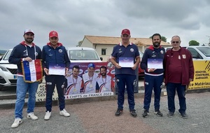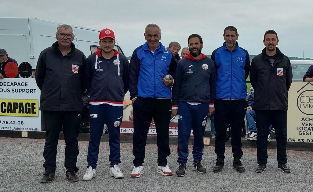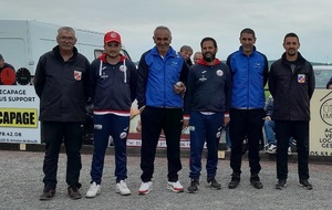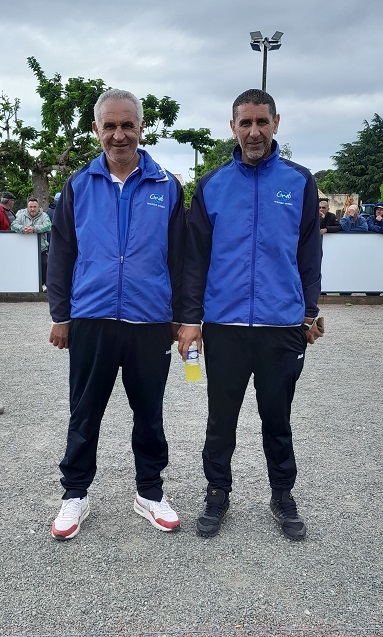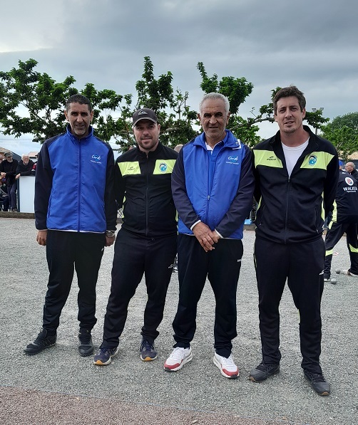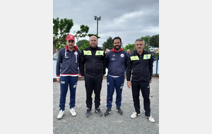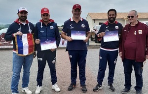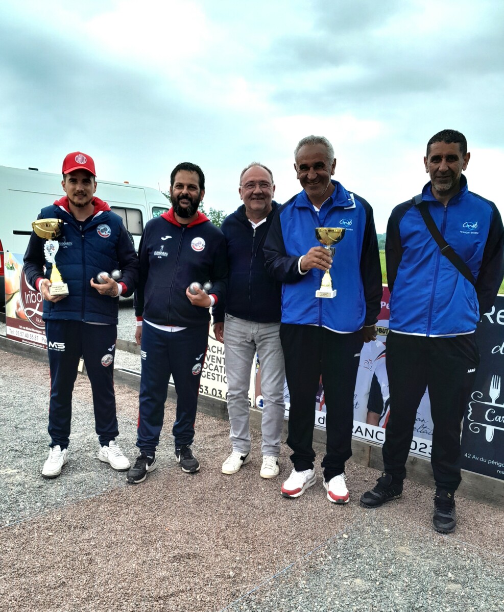 ainsi qu'aux trois équipes qualifiées pour le championnat régional du 1er juin à Saint Junien : LAHMAZA Abdelmadjid - LAHMAZA Lofti / C M O BASSENS, vice-champions de Gironde // LANGLAIS Stéphane - ARGUEYROLLES Romain / ARCACHON BOULES // AUBRY Mickaël - PEYRE Laurent / ARCACHON BOULES