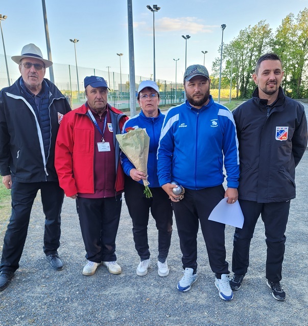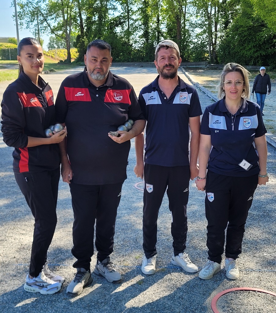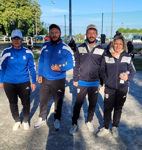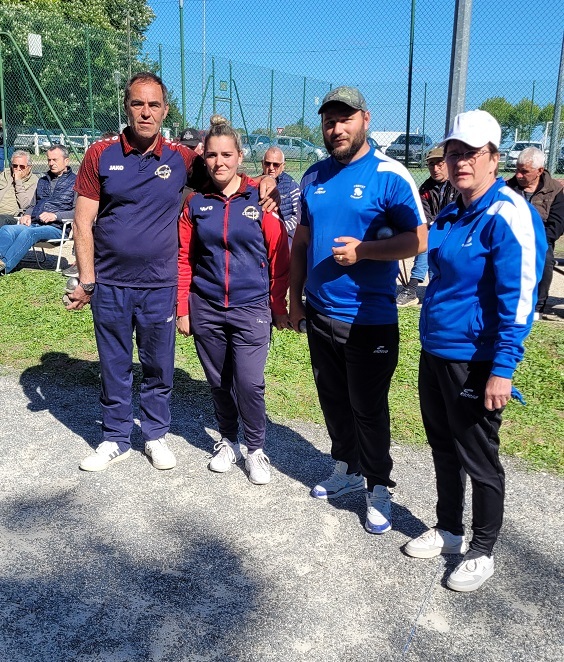 Les vice-champions LARRAT Nathalie - GIMENEZ Mickaël / BOULE FONTESIENNE se qualifient pour le championnat régional du 18 mai 2024 à Rochefort. Ils seront accompagnés de GILAIS Sarah - RICHARD Laurent / BOULE CANEJANAISE et de FELTAIN Valeria - FELTAIN Charlie / PETANQUE CUBZACAISE.