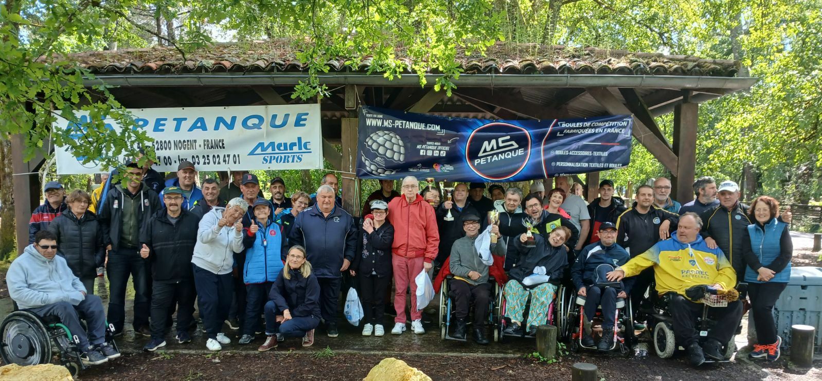 "Ce vendredi 17 Mai, le domaine Lagors d’Hostens nous a accueilli, les services du Conseil Général avaient mis à disposition ses terrains, du matériel et leur gentillesse. Seize équipes se sont affrontées dans un excellent esprit, le matin avec un temps clément mais l’après midi sous une pluie continue. Heureusement que le pique nique partagé a réchauffé le moral et l’ambiance. A la table, c’est l’ami Kiki qui a géré d’une main de maître. Côté résultats, la finale a opposé l’équipe de Régis à celle de Xavier. Mais comme à l’école des fans, tout le monde a gagné ! Merci aux sponsors tout particulièrement les boules MS, le Conseil Général, Malbo Courbin, La Boule d’Haureuils Barpaise, la mairie d’Hostens, le district Bassin Sud et son président Salva qui a remporté la tombola (un jeu de boules) avec Jean Marie Cabard (une boule cloutée de collection)".